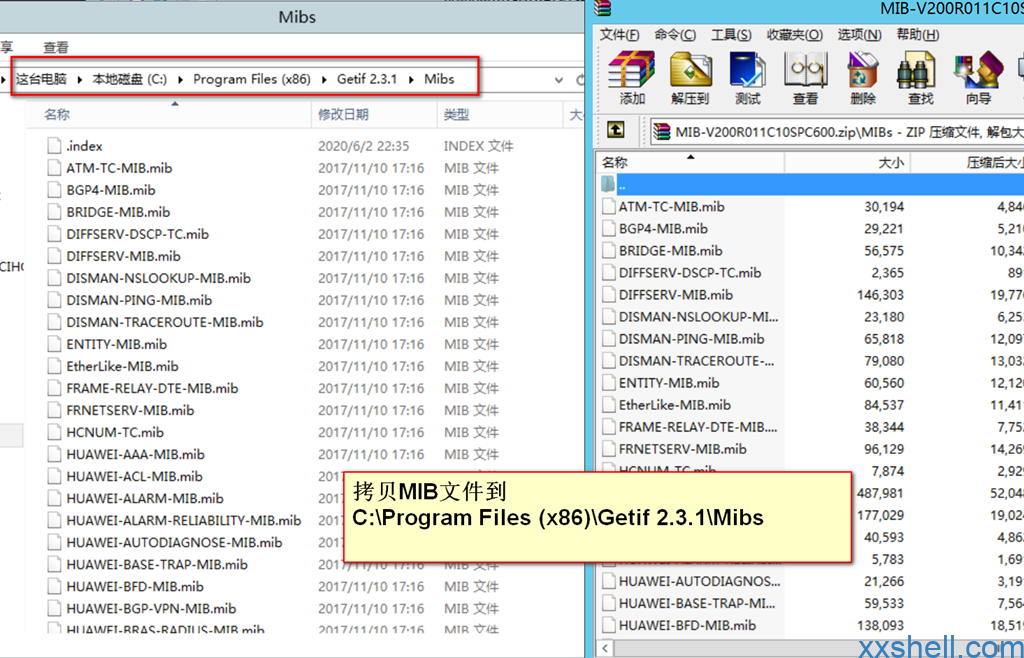 1、安装Getfi后,打开安装目录将下载的MIB库文件解压到“Mibs”文件夹;