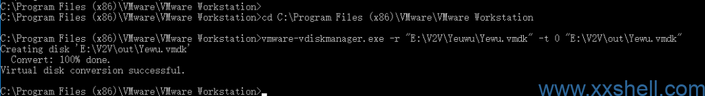 vmware-vdiskmanager.exe -r "E:\V2V\Yeuwu\Yewu.vmdk" -t 0 "E:\V2V\out\Yewu.vmdk"