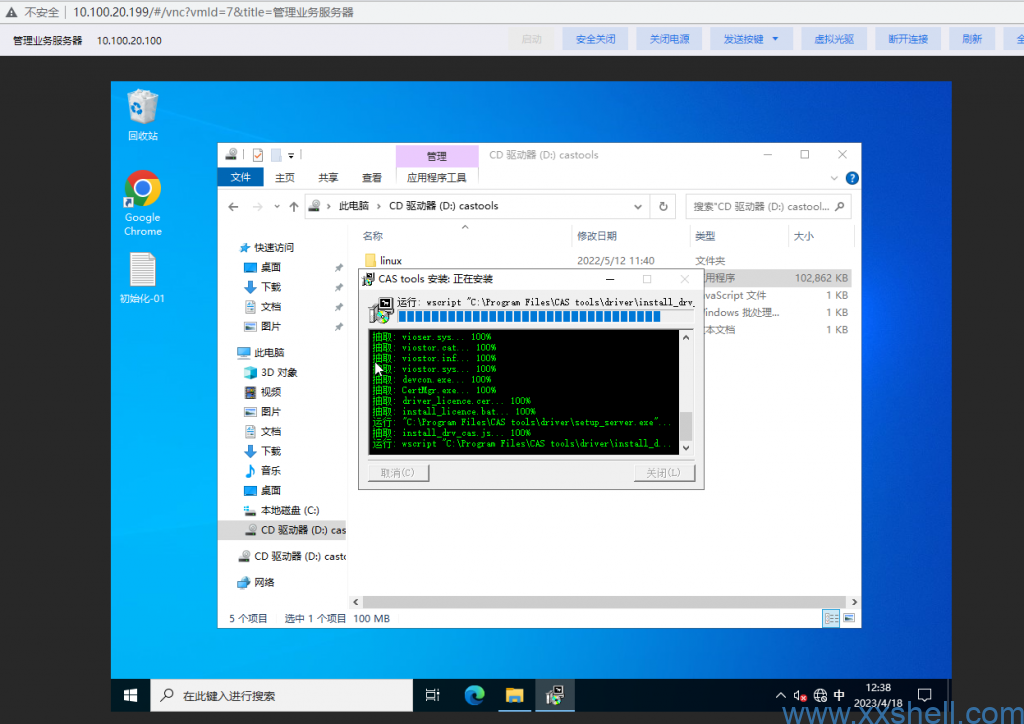 10、登录VNC控制台,在挂载的光驱上安装CAS Tools,安装完成后重启虚拟机;重启完成后显示CAS tools运行正常,我们将虚拟机关机。