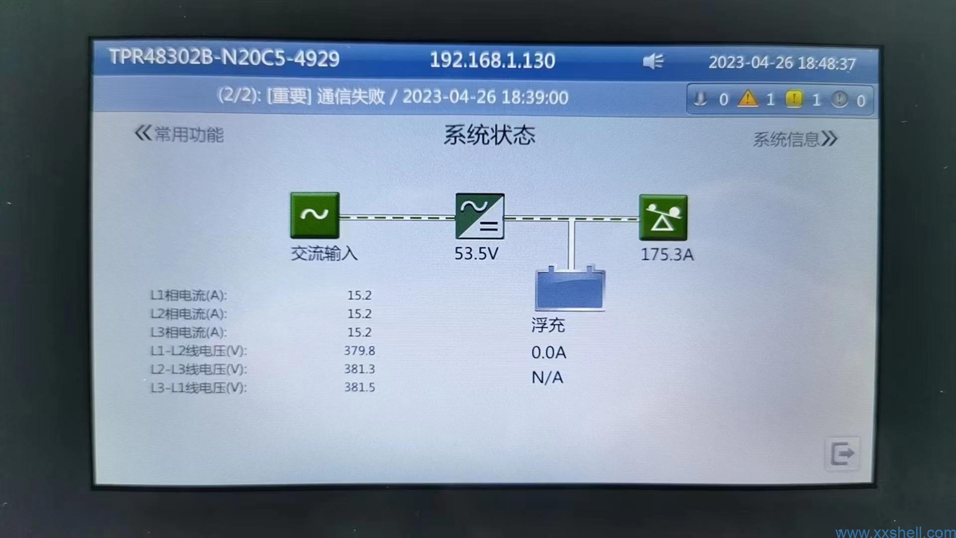 华为TP483000D系列整流柜,型号:TPR48302B-N20C5液晶显示屏交流输入电流不能正常显示,显示为N/A,登录SMU02C管理模块发现,交流配电电流与电压显示正常;