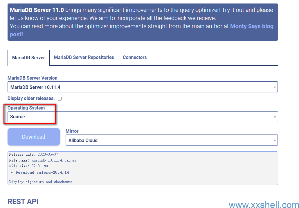 wget https://mirrors.aliyun.com/mariadb//mariadb-10.11.4/source/mariadb-10.11.4.tar.gz