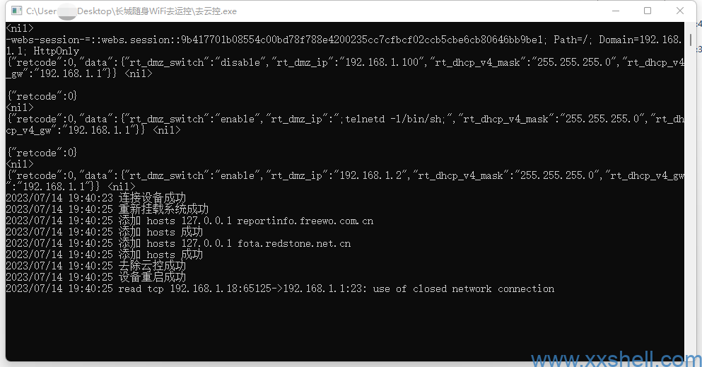 去除云控管理可以使用SIM卡槽的手机卡,电脑连接设备wifi在windows电脑上运行脚本即可,前提您的设备版本为R106_20230617版本才可以,版本信息在管理页面-设备信息-主板软件版本中查看。