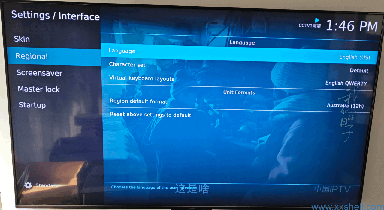3、选择interface-Regional-然后选择Language,将语言选择为Chinse(Simple)。