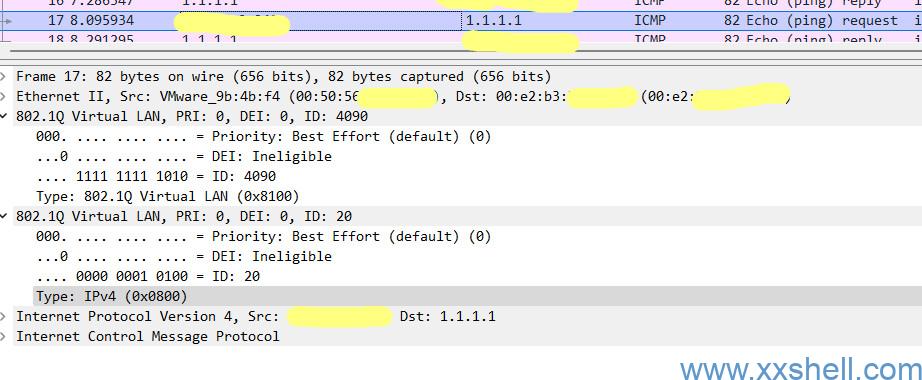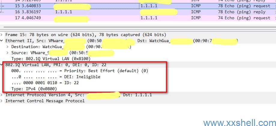 问题排查通过抓包发现到防火墙能正常分析的流量不带vlanid结尾为0X0800可以被解析(因镜像的上联口采用pvid方式剥离标签,所以交换机端口镜像到DPI防火墙所以防火墙能分析该地址段的流量)。图下图抓包所示: