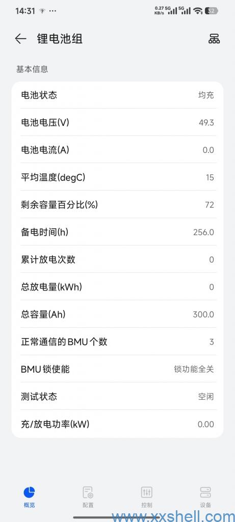 锂电池组 可以查看电池组的各项信息如整体的电压、电流、总放电功率、总放电量等;