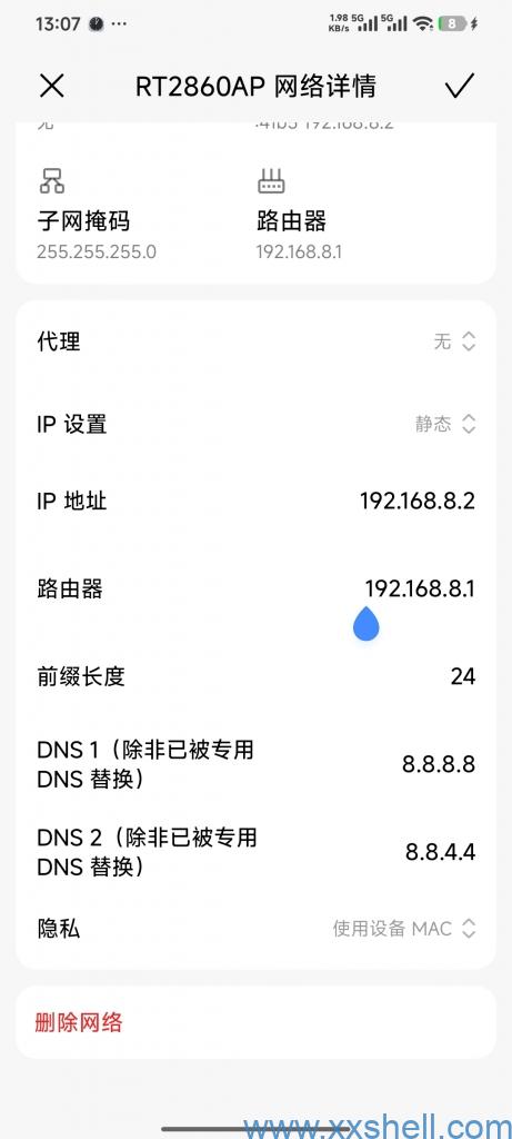 IP地址为192.168.8.2 如果有多个终端地址依次往后顺延